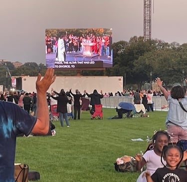 The day of the event the woman of the house agreed to join the fast as we gathered on the Mall to intercede on behalf of our nation. From the moment we found a parking spot, we could see believers all throughout the busy streets marching to the distant sound of drums and instruments carried on the air. Excitement filled our spirits. Suddenly, I felt the importance of why the Lord wanted my feet on the ground alongside my four children. We were standing amongst women of all ages, from the elderly to the infant to those still in their mother's womb. I had asked the Lord, "Will there be 1 million women?" He responded with a vision of a woman pregnant with a girl. There stood three generations of women. The female infant in utero was already carrying all the eggs she would ever have as a woman and thus the future generation was already within her womb as she was being formed in her mother's womb! SO AMAZING! So the short answer is, "YES."